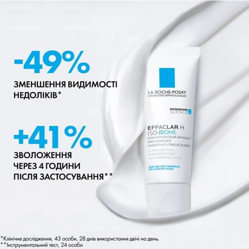 Заспокійливий відновлювальний зволожувальний крем La Roche-Posay Effaclar H Iso-Biome для зневоднено