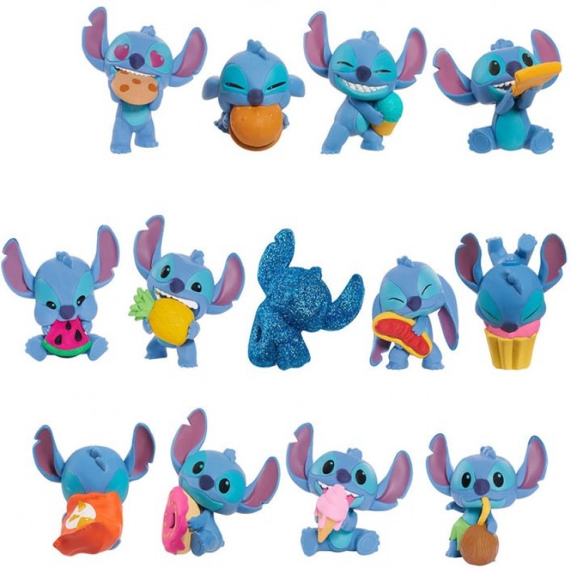 Зустрічайте улюбленого героя з мультфільму 'Ліло і Стіч'! Стіч - це милий блакитний прибулець, який обожнює смаколики. У цій серії Ви можете знайти фігурку Стіча з пончиком у глазурі, апельсином, пирогом, попкорном або печивом! Вони ідеально підходять для колекціонування та веселих ігор. З якими ласощами Стіч Вам більше до вподоби?